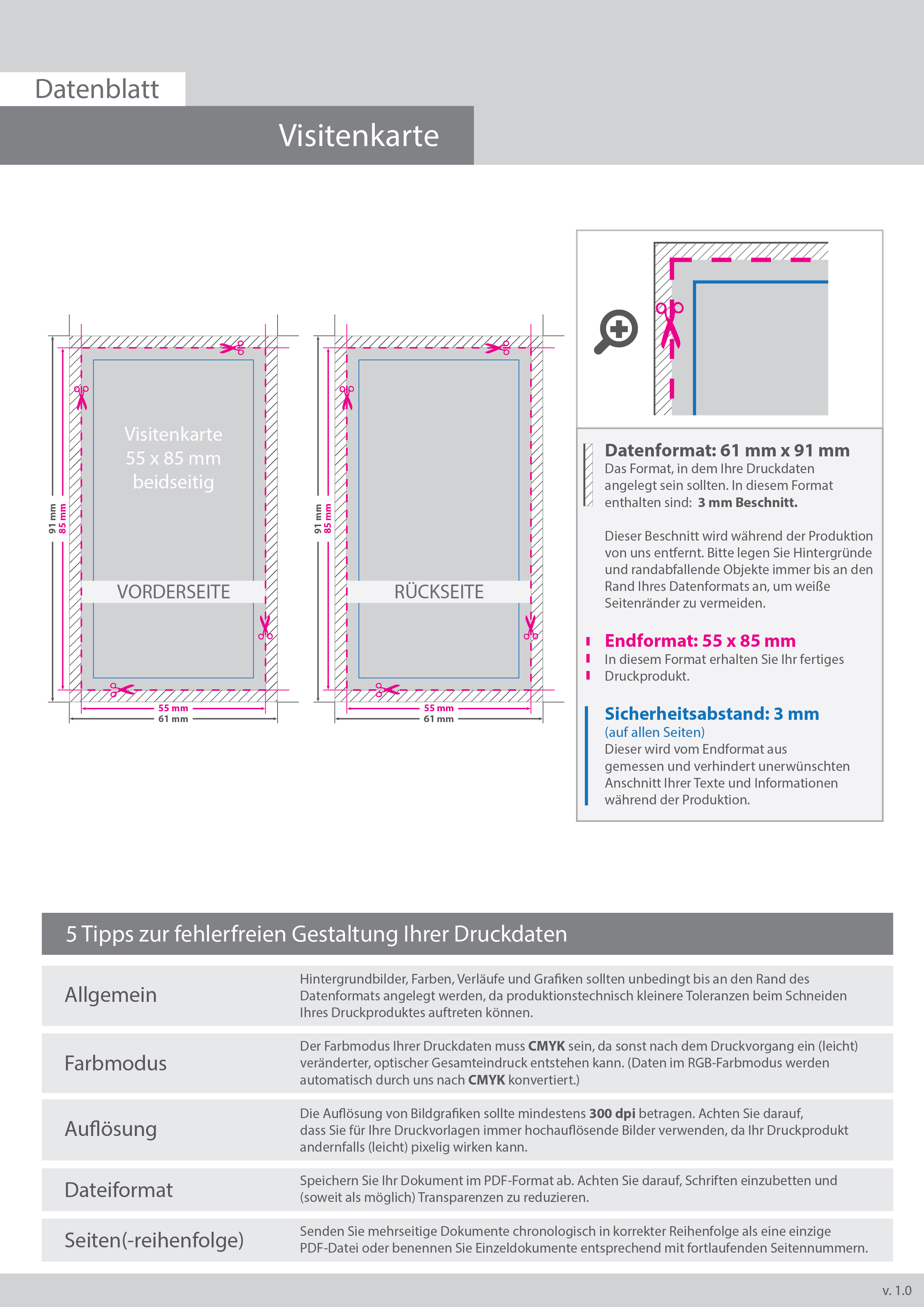 Visitenkarten hoch 4/4 farbig 55 x 85 mm (beidseitiger Druck), 283g Kraftkarton