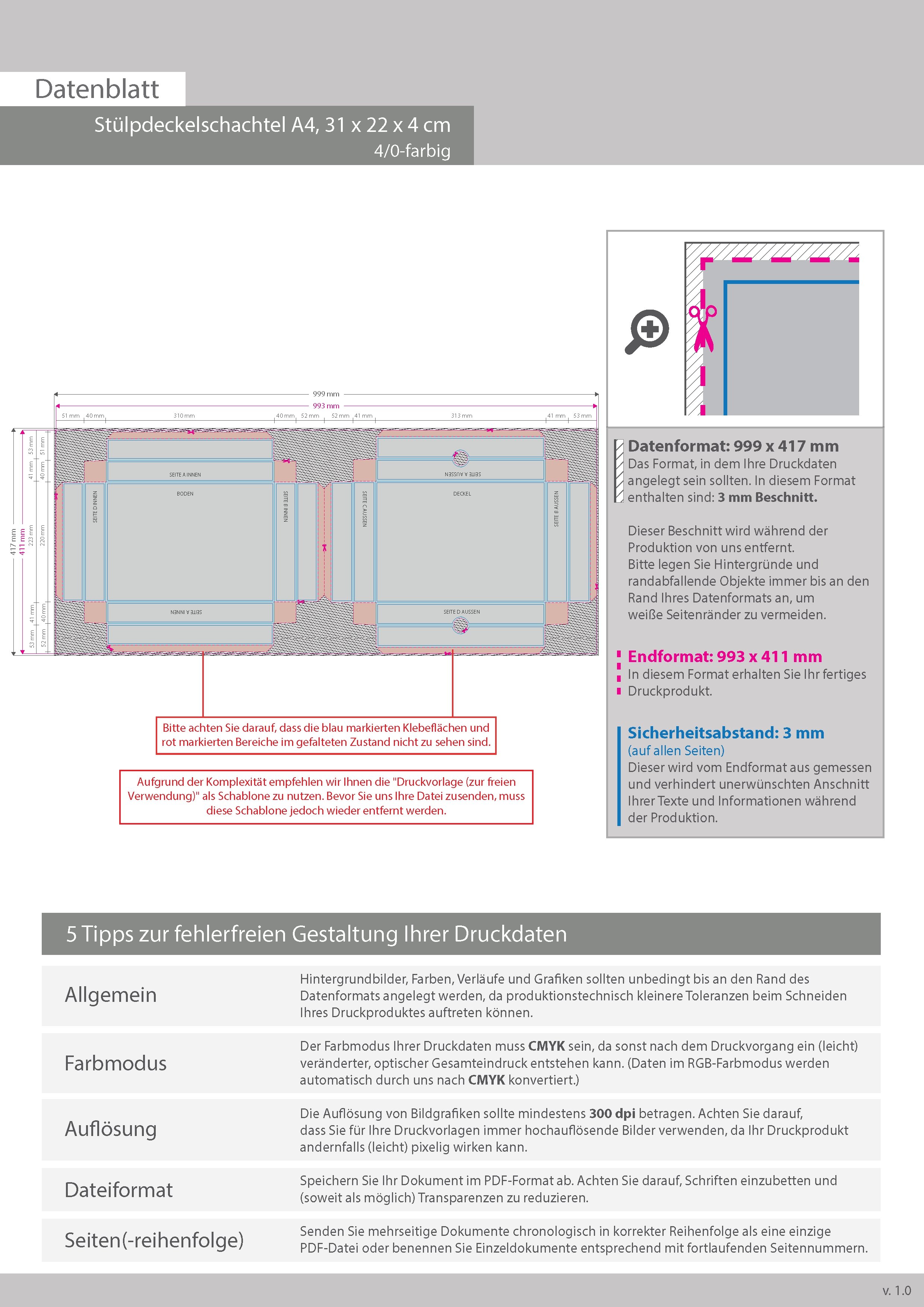 Stülpdeckelschachtel A4 (31 x 22 x 4 cm), 4/0 farbig bedruckt
