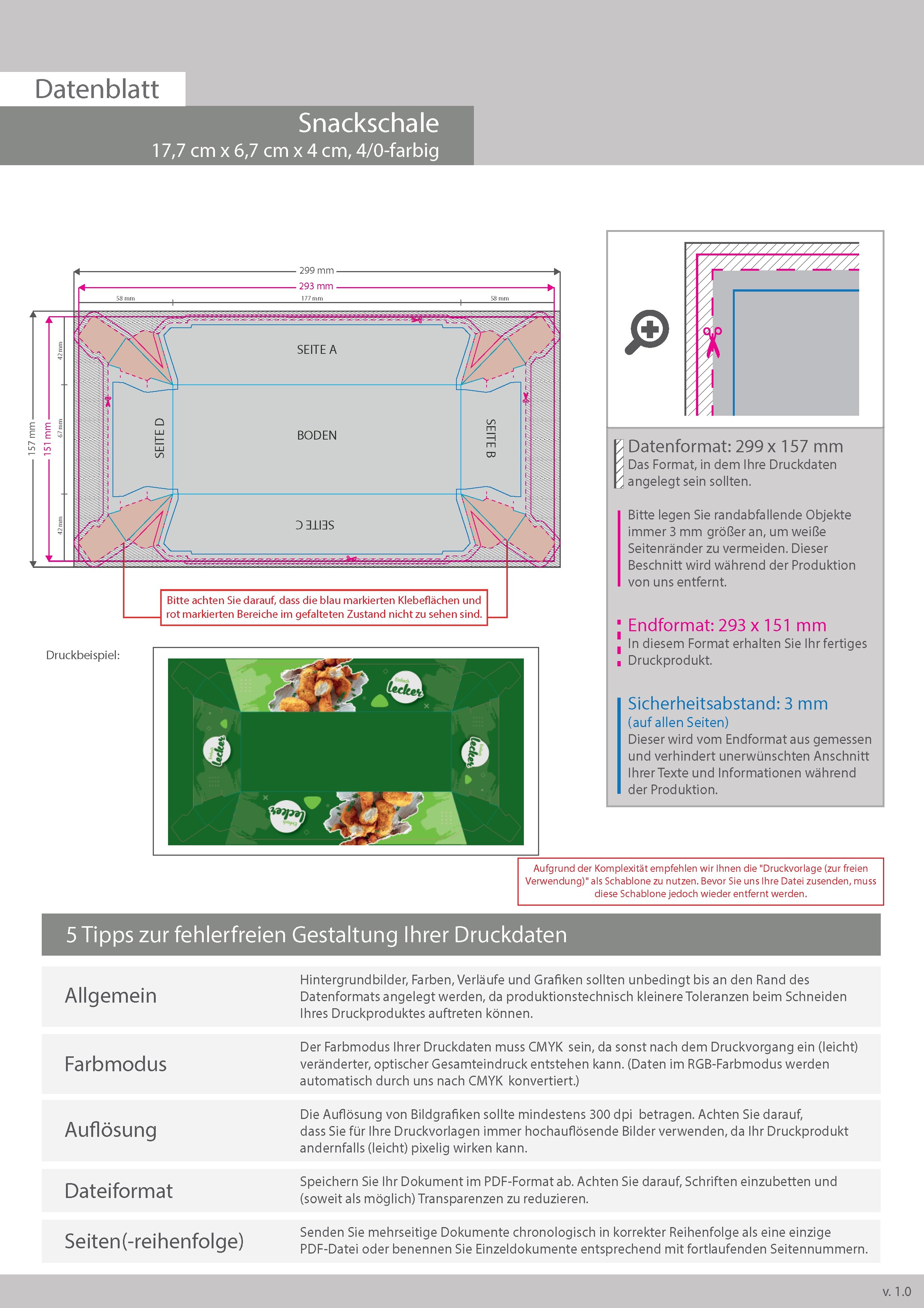 Snackschale (17,7 cm x 6,7 cm x 4 cm) einseitig bedruckt 4/0-farbig