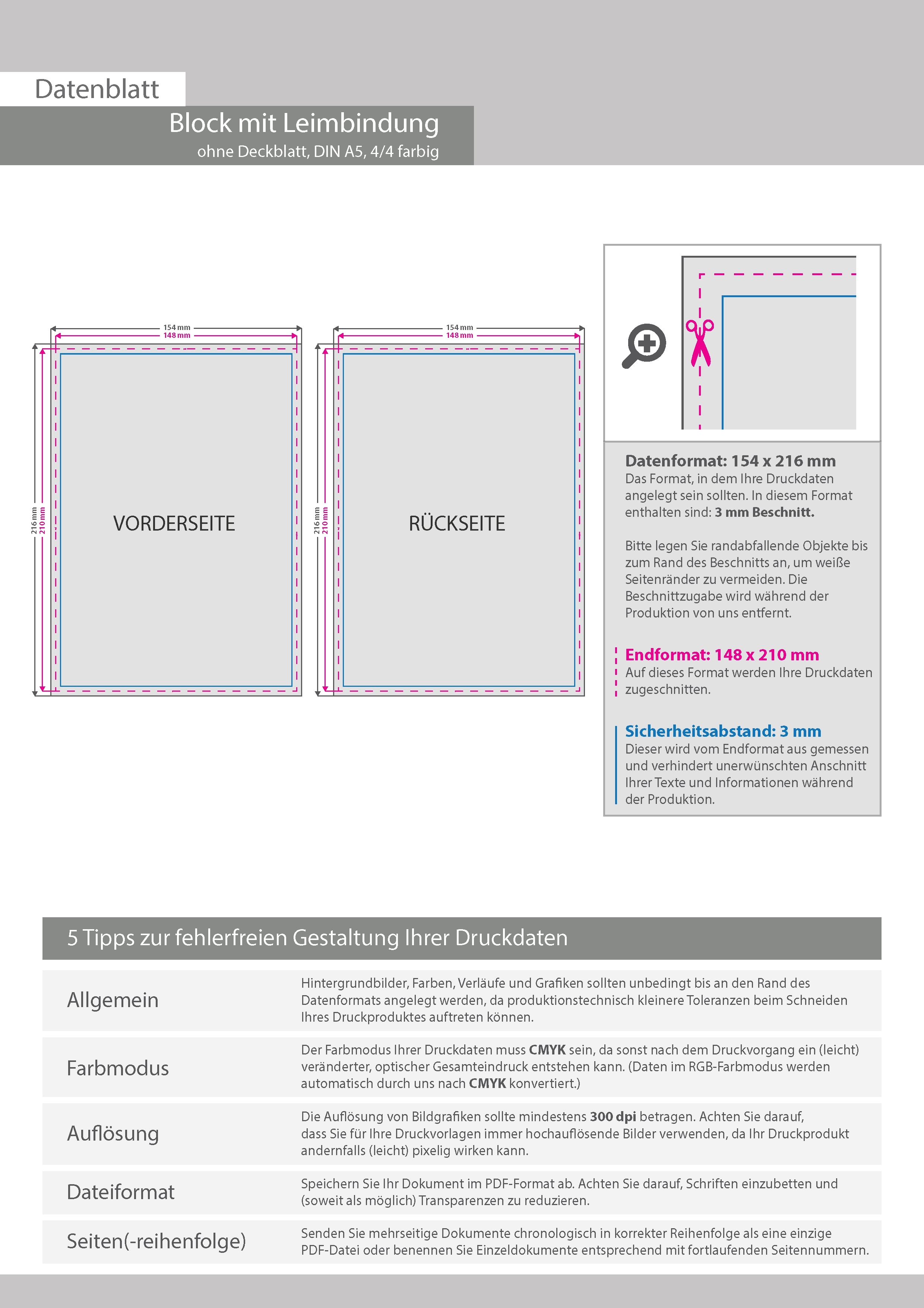 Block mit Leimbindung, DIN A5, 25 Blatt, 4/4 farbig beidseitig bedruckt