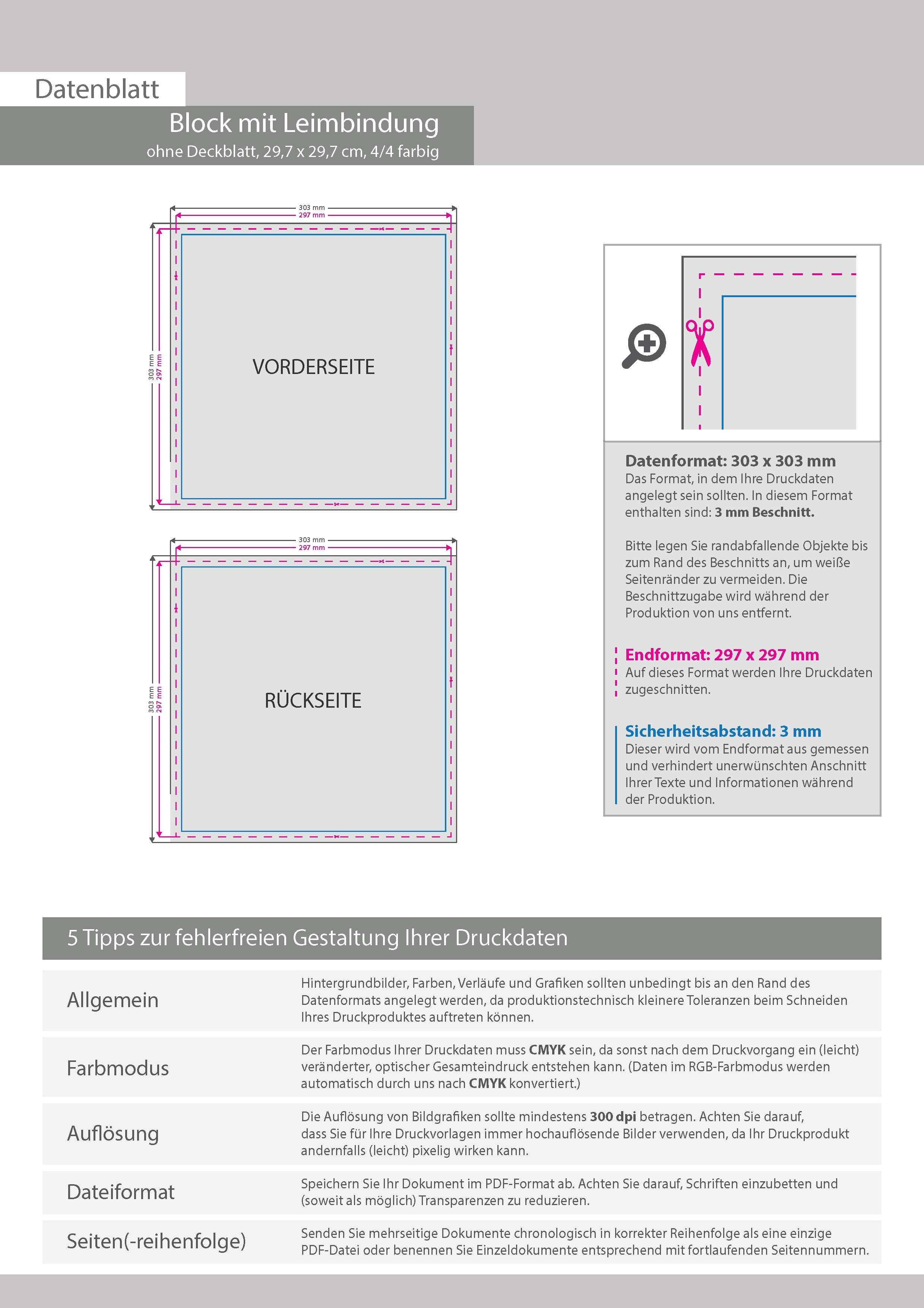 Block mit Leimbindung, 29,7 cm x 29,7 cm, 200 Blatt, 4/4 farbig beidseitig bedruckt