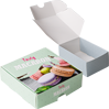 In unserem Onlineshop finden Sie Lebensmittelverpackungen in unterschiedlichen Ausführungen. Entdecken Sie beispielsweise die Clickbox mit Längsnaht; diese ist wiederverschließbar und hat einen automatischen Deckelverschluss. Oder werfen Sie einen Blick auf unsere Schokoladenverpackungen, die optimal auf das Format von klassischen Schokoladentafeln zugeschnitten sind. Alternativ empfehlen wir Ihnen unsere Dachverpackungen, die sich mit ihrer besonderen Optik von klassischen Schachteln abheben. Natürlich sind alle Modelle in mehreren Größen verfügbar.